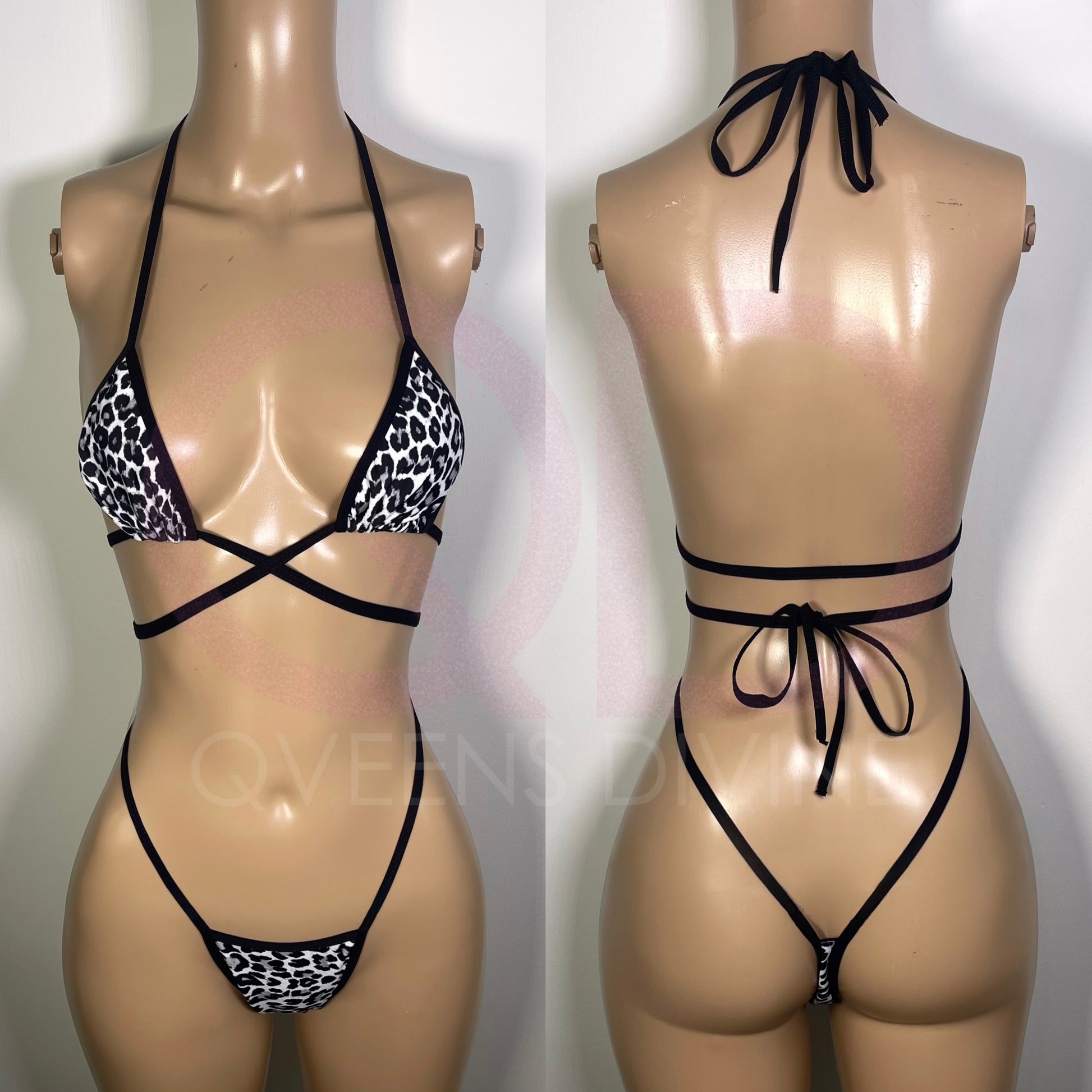 Own your power in the Noir Bikini, where audacious black and white leopard print meets fearless silhouette design. The interlocking criss-cross front commands attention while sculpting your waist with precision, while the wrap-around construction delivers unwavering support without compromise.